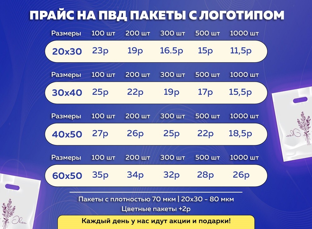 Цветные пакеты +1р на 1 шт пакета